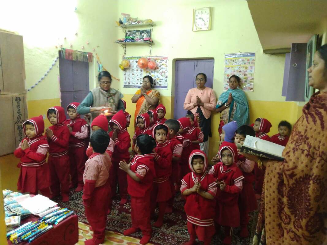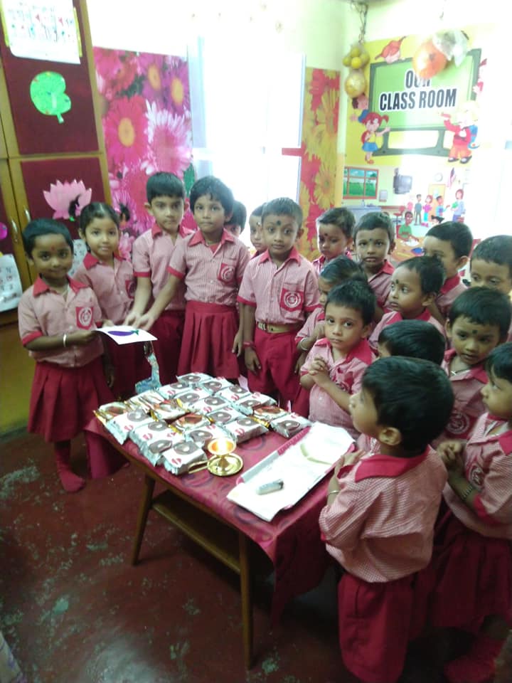 Students have their birthday celebrated in both Indian way with lighting of diya (clay lamp) and in a more modern way with children singing happy birthday.